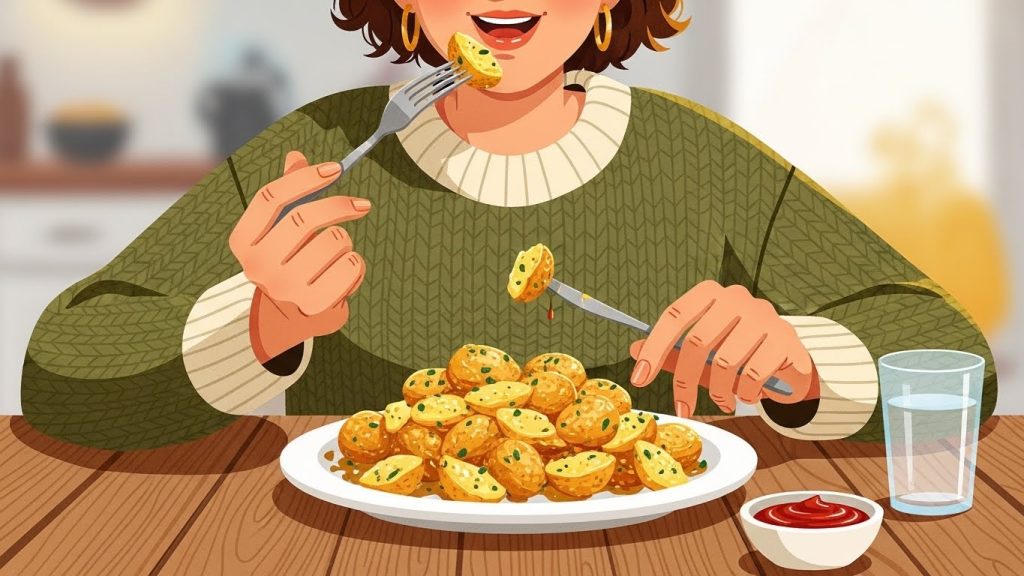 ① 新ジャガイモを皮付きのまま半月切りにし、電子レンジで4分加熱します。