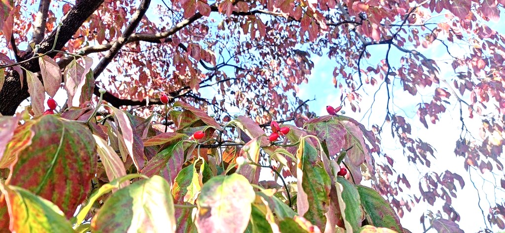 そして、何の実かは存じませんが、赤い実を見つけると、