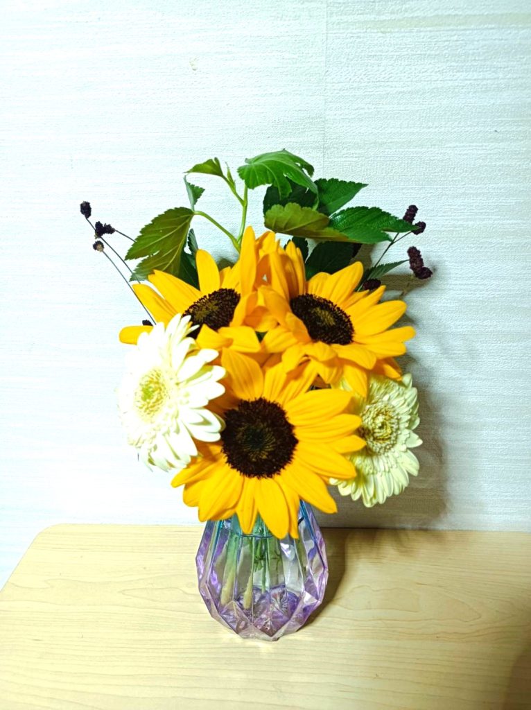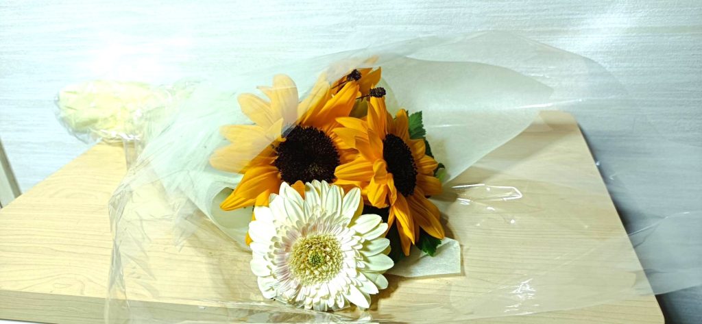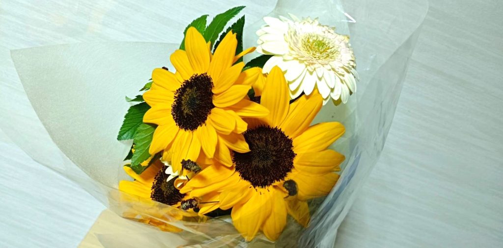 1つ目は、ひまわりとガーベラの花束です。