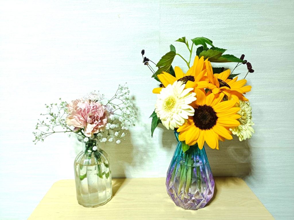 花瓶に活けたお花を、2つ並べるととても可愛いです。(*^^*)