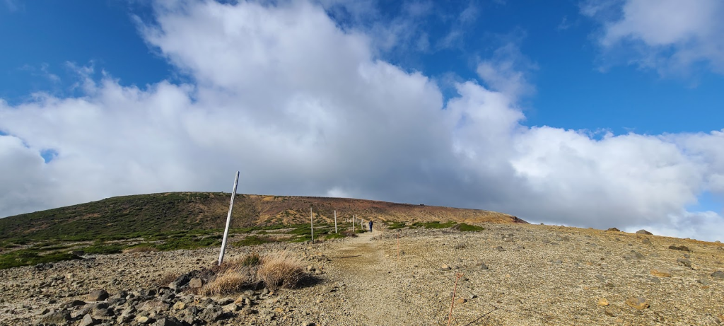 先程まで「御釜」を見ていた「刈田岳 (かっただけ)」方面。