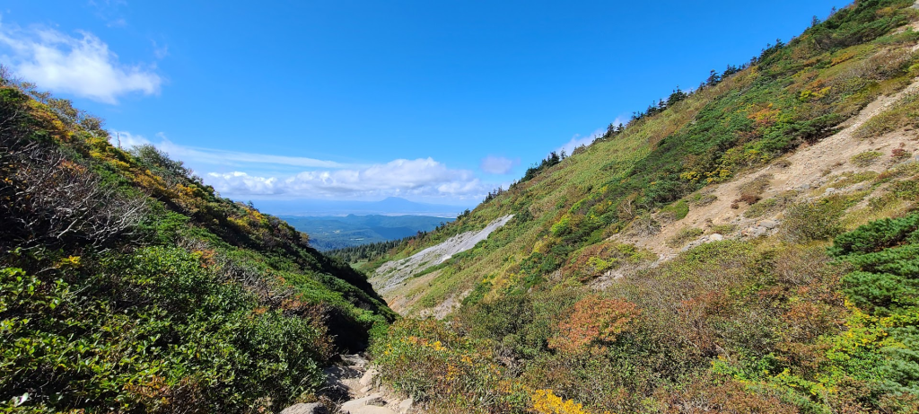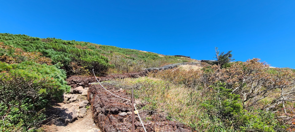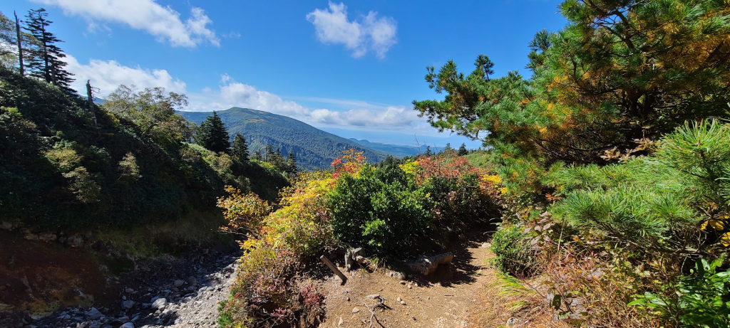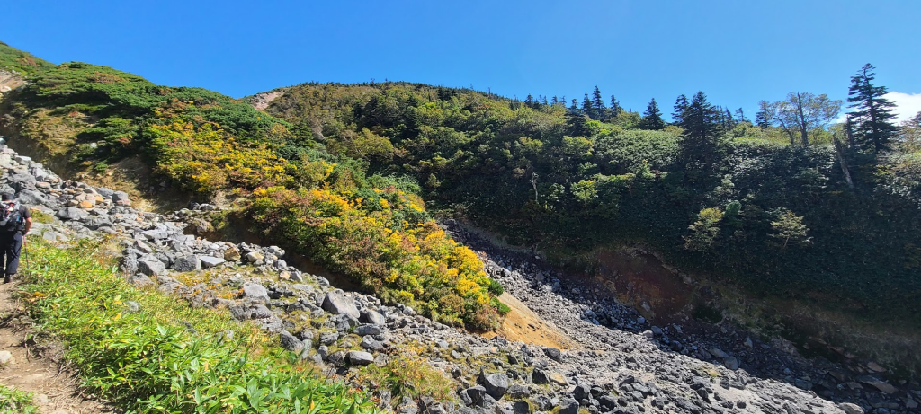 「大岳避難小屋」から「毛無岱」方面へ。