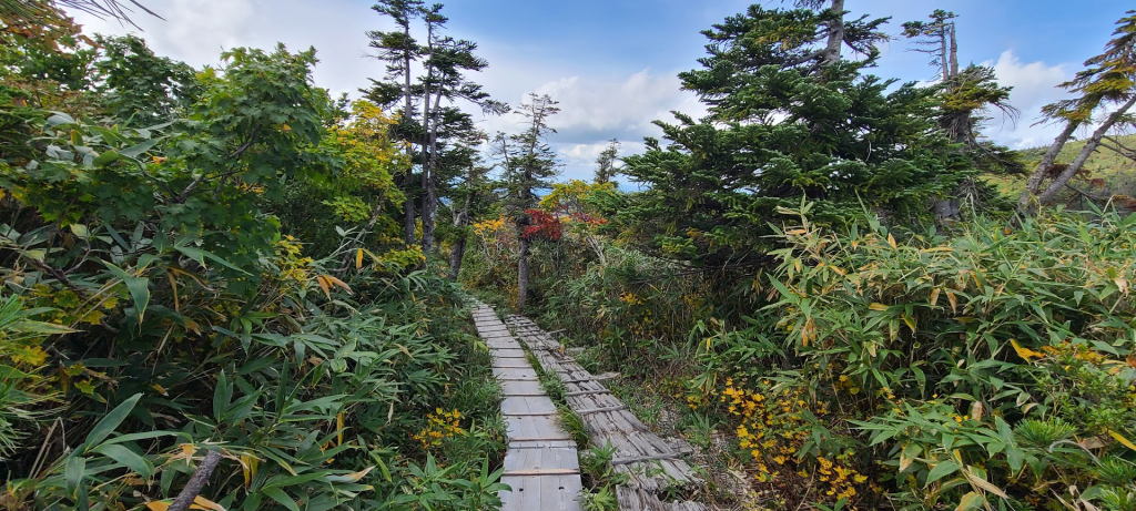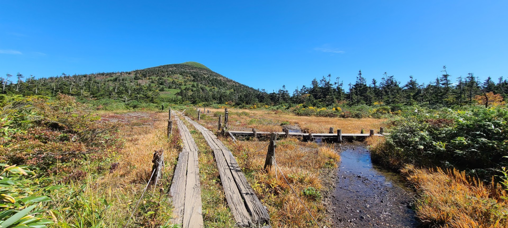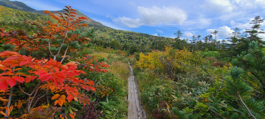 今回は頂上の「八甲田大岳」を目指すのですが、紅葉の名所である「下毛無岱(しもけなしたい)」を絡めた周回ルートで巡っていきます。