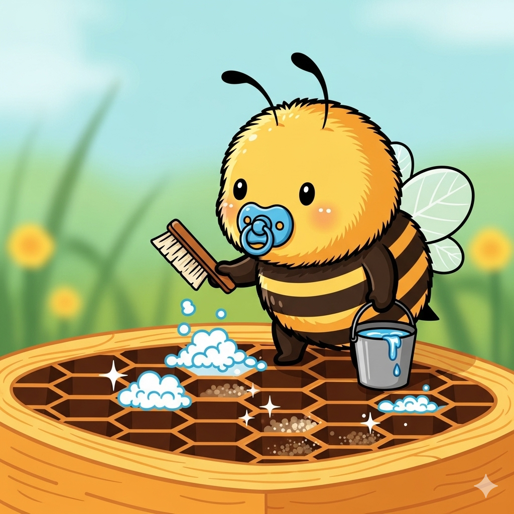 「日齢分業(にっれいぶんぎょう)」と呼ばれていて、羽化してすぐは巣の掃除を任されます。
