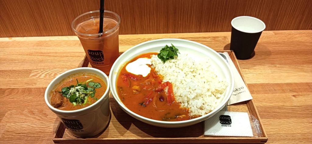 温かいカレーとスープが、空腹の冷え切った身体に優しくて、