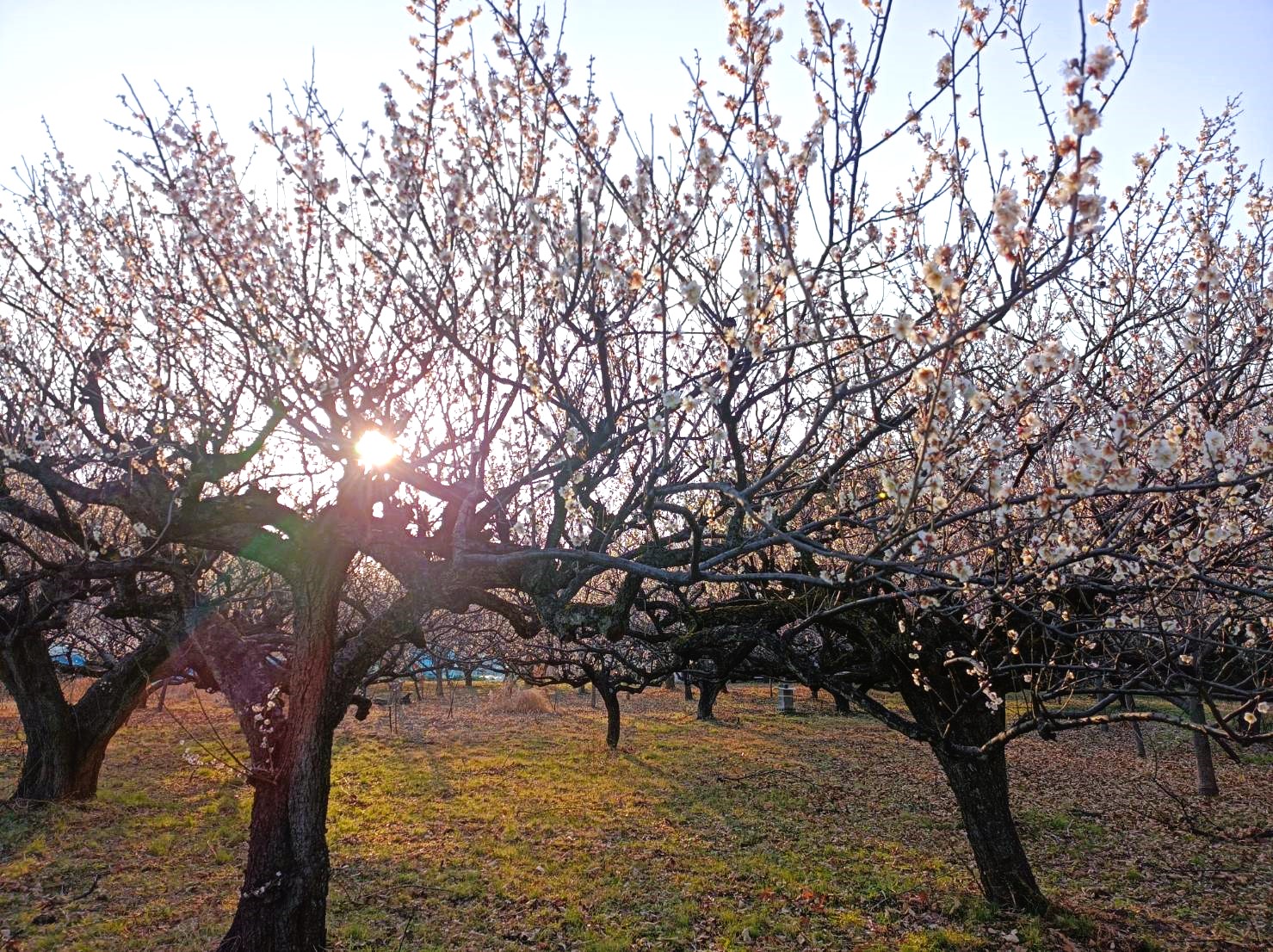 白梅が夕日に照らされ、ほんのりと紅く染まった様子がとても綺麗で感動しました。